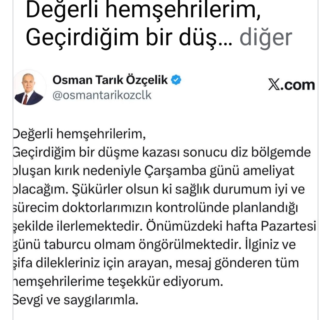 Doktorların yaptığı değerlendirme sonucunda Özçelik’in ameliyat edilmesine karar verildi. Belediye Başkanının Çarşamba günü operasyon geçireceği ve tedavisinin hastanede sürdüğü bildirildi.