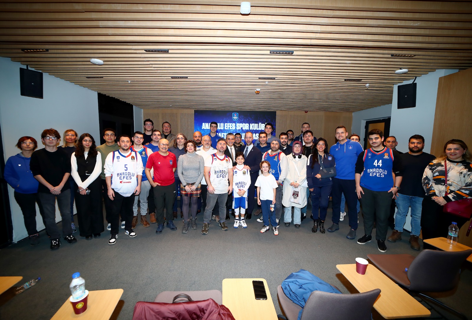 Anadolu Efes Spor Kulübü, birlikte tarihi başarılara ve “ilk”lere imza attığı taraftarlarıyla özel bir etkinlikte bir araya geldi. Kulüp ve taraftar birlikteliğini pekiştirmek amacıyla düzenlenen “Taraftar Buluşması” etkinliği, Anadolu Efes Spor Kulübü Genel Müdürü Gökçe Dayı ve Sportif Direktörü İsmail Şenol’un yönetiminde yapıldı.