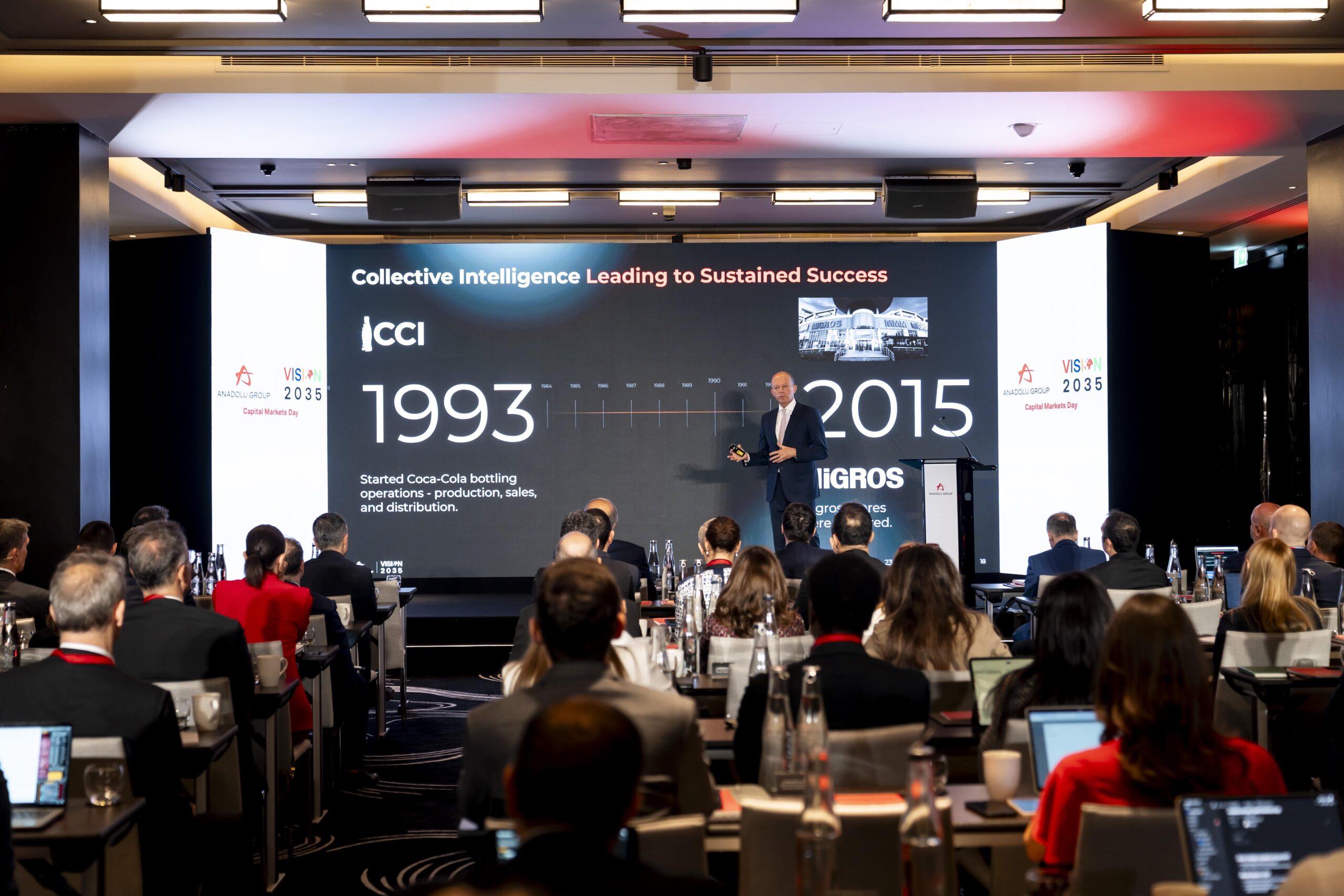 Yatırımcı Günü‘nde Anadolu Grubu’nun, 20 ülkede faaliyet gösteren, 1 milyardan fazla tüketiciye ulaşan, Türkiye merkezli, tüketici odaklı küresel bir yapıya dönüşüm hikayesi anlatıldı. Ayrıca, Grubun dayanıklılığını ve çevikliğini artırmaya, disiplinli portföy ve finansal yönetimini sağlamaya, nitelikli büyümenin hızlandırılmasına ve tüm paydaşlar için sürdürülebilir değer üretmeye yönelik stratejileri paylaşıldı.