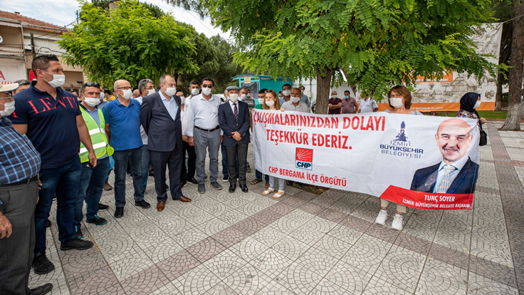 Poyracık Köy meydanında düzenlenen dağıtım törende Başkan Soyer, koronavirüs salgınının henüz bitmediğine işaret ederek, dikkatli olunması, tedbirlere uyulması konusunda yurttaşları uyardı. Başkan Soyer koronavirüs sürecinde ilçede yapılan yardım ve destekleri anlattı.
