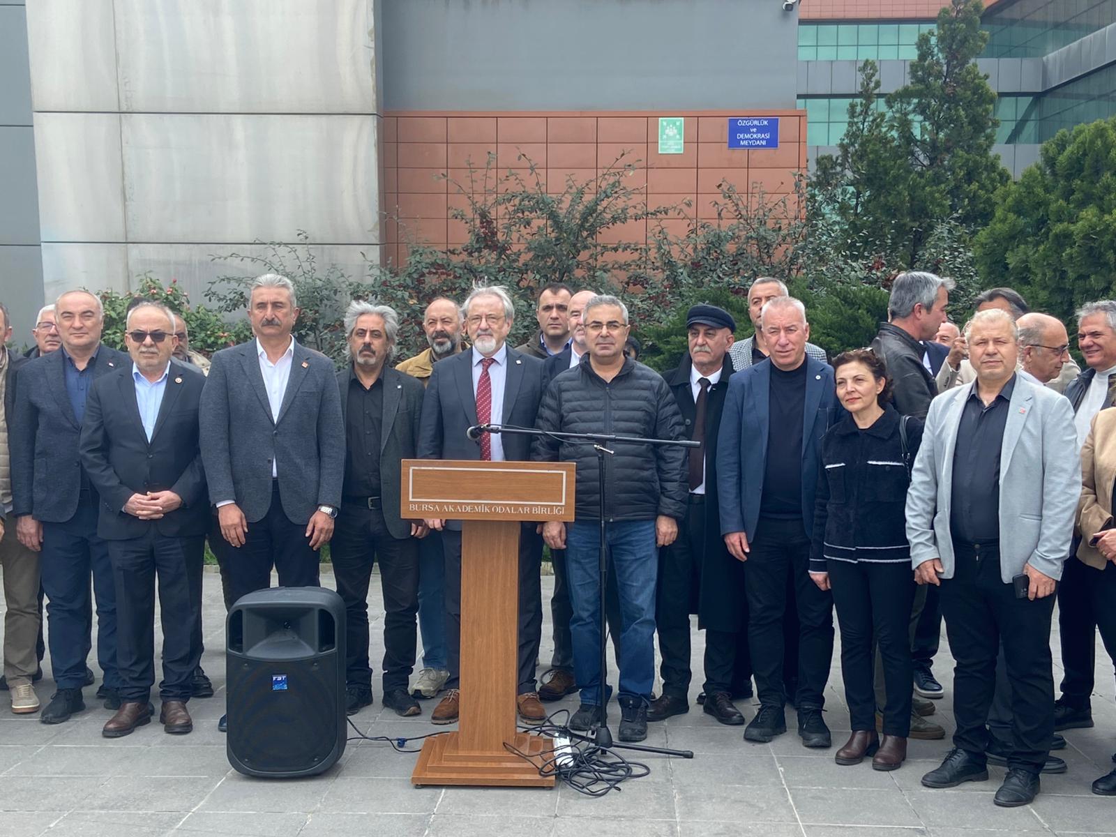 HABERMAX. Bursa Büyükşehir Belediye Başkanı Mustafa Bozbey’in gözaltına alınmasının ardından, kentteki önemli meslek ve emek örgütleri ortak bir basın açıklaması gerçekleştirdi. Devrimci İşçi Sendikaları Konfederasyonu (DİSK), Kamu Emekçileri Sendikaları Konfederasyonu (KESK), Türk Mühendis ve Mimar Odaları Birliği Bursa İl Koordinasyon Kurulu, Bursa Tabip Odası ve Bursa Veteriner Hekimler Odası tarafından yapılan açıklama, BAOB Özgürlük Meydanı’nda düzenlendi.