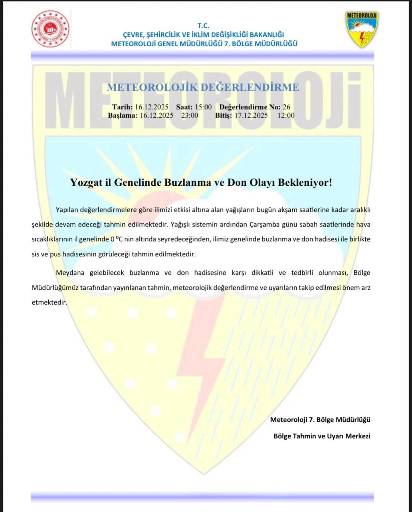 Yetkililer, yayaların da kaygan zeminlere karşı dikkatli olmaları gerektiğini hatırlatırken, güncel hava durumu tahminleri ve meteorolojik uyarıların Meteoroloji Genel Müdürlüğü tarafından yapılacak duyurular üzerinden takip edilmesinin önem taşıdığı ifade edildi.