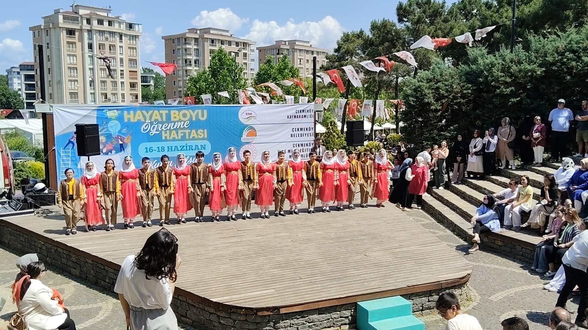 Çekmeköy’de düzenlenen etkinlikte öğrenciler folklor ekibinin coşkulu gösterisiyle program renklendi. Katılımcılar, halk oyunlarıyla keyifli anlar yaşadı.