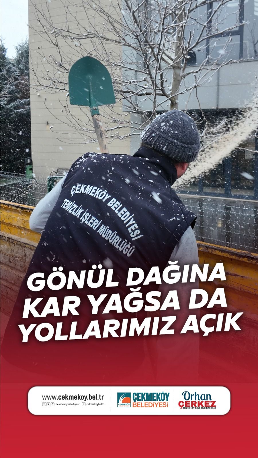 “Kar yağışı nedeniyle Çekmeköy’ümüzde gece gündüz demeden görev yapan; yollarımızı, ibadet alanlarımızı temizleyen, buzlanmaya karşı büyük bir özveriyle çalışan cefakâr mesai arkadaşlarıma yürekten teşekkür ediyorum.