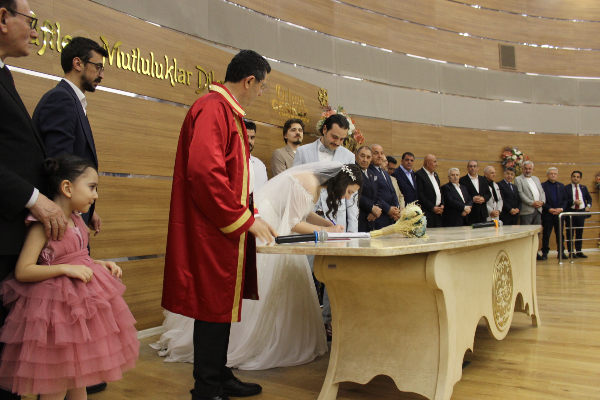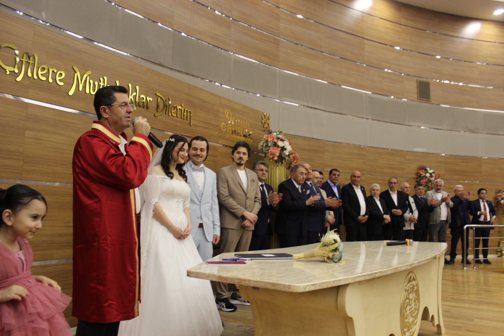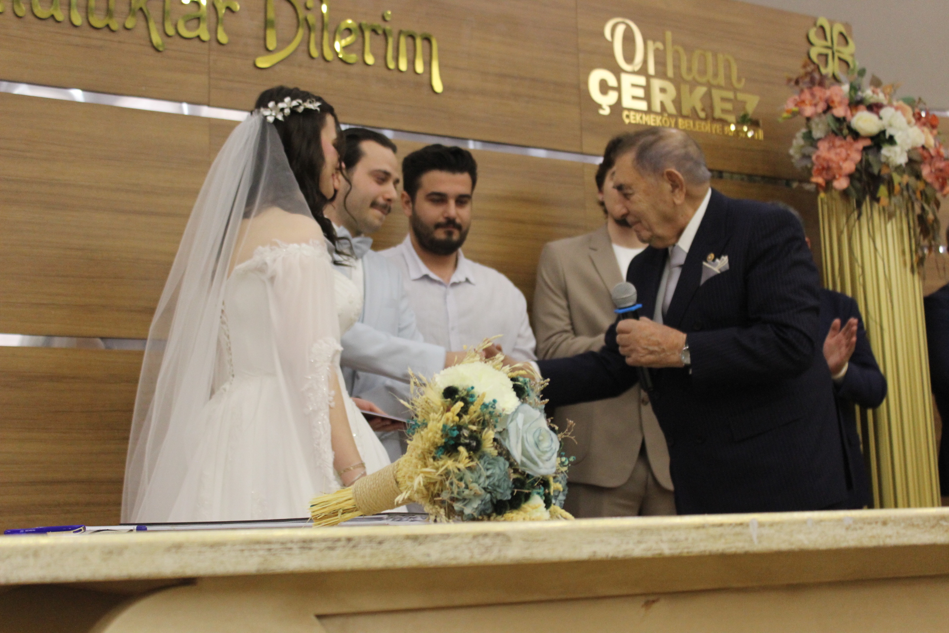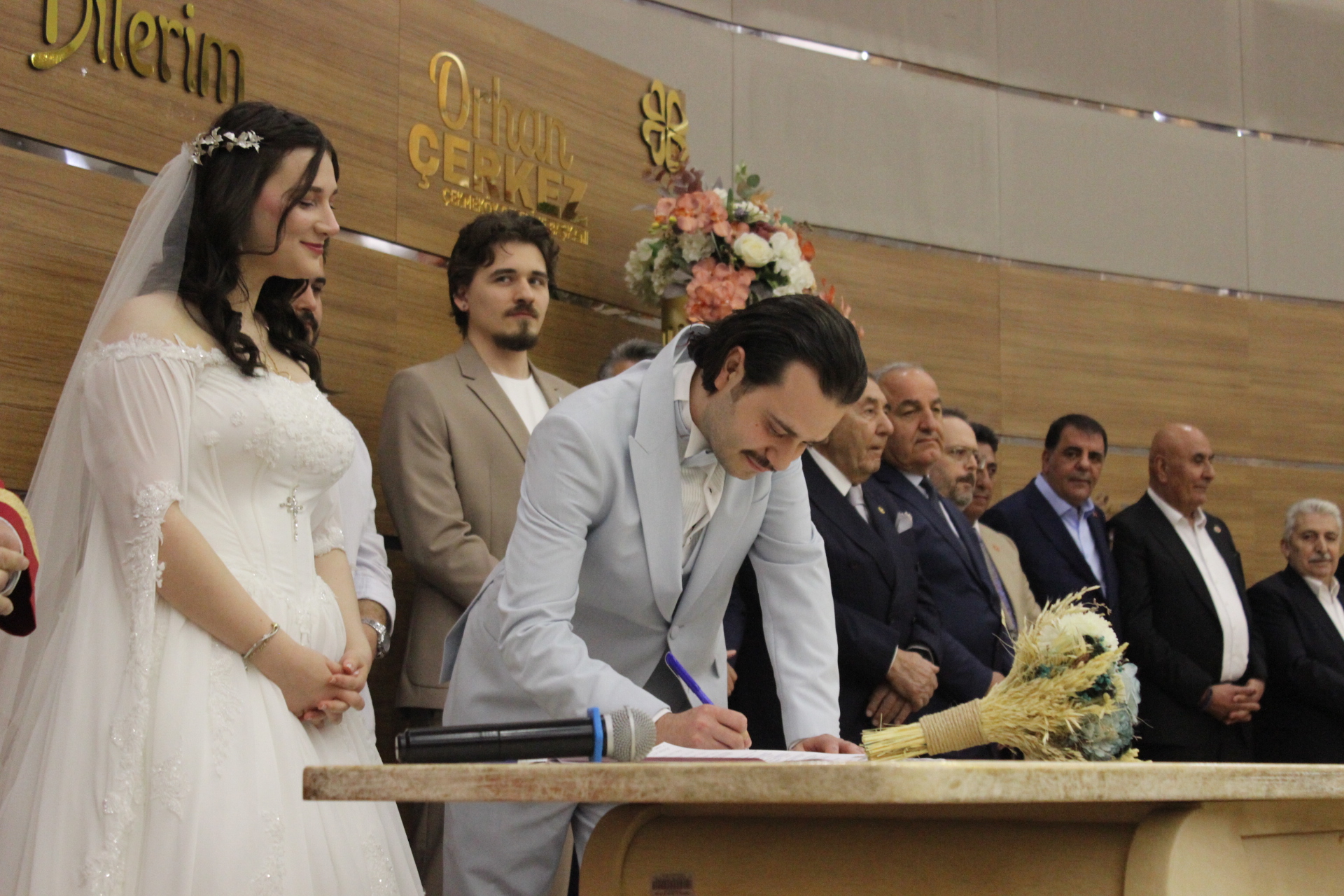 Nikâhın ardından Başkan Çerkez, evlilik cüzdanını takdim etmesi için CHP eski Milletvekili Prof. Dr. Esfender Korkmaz’ı davet etti.