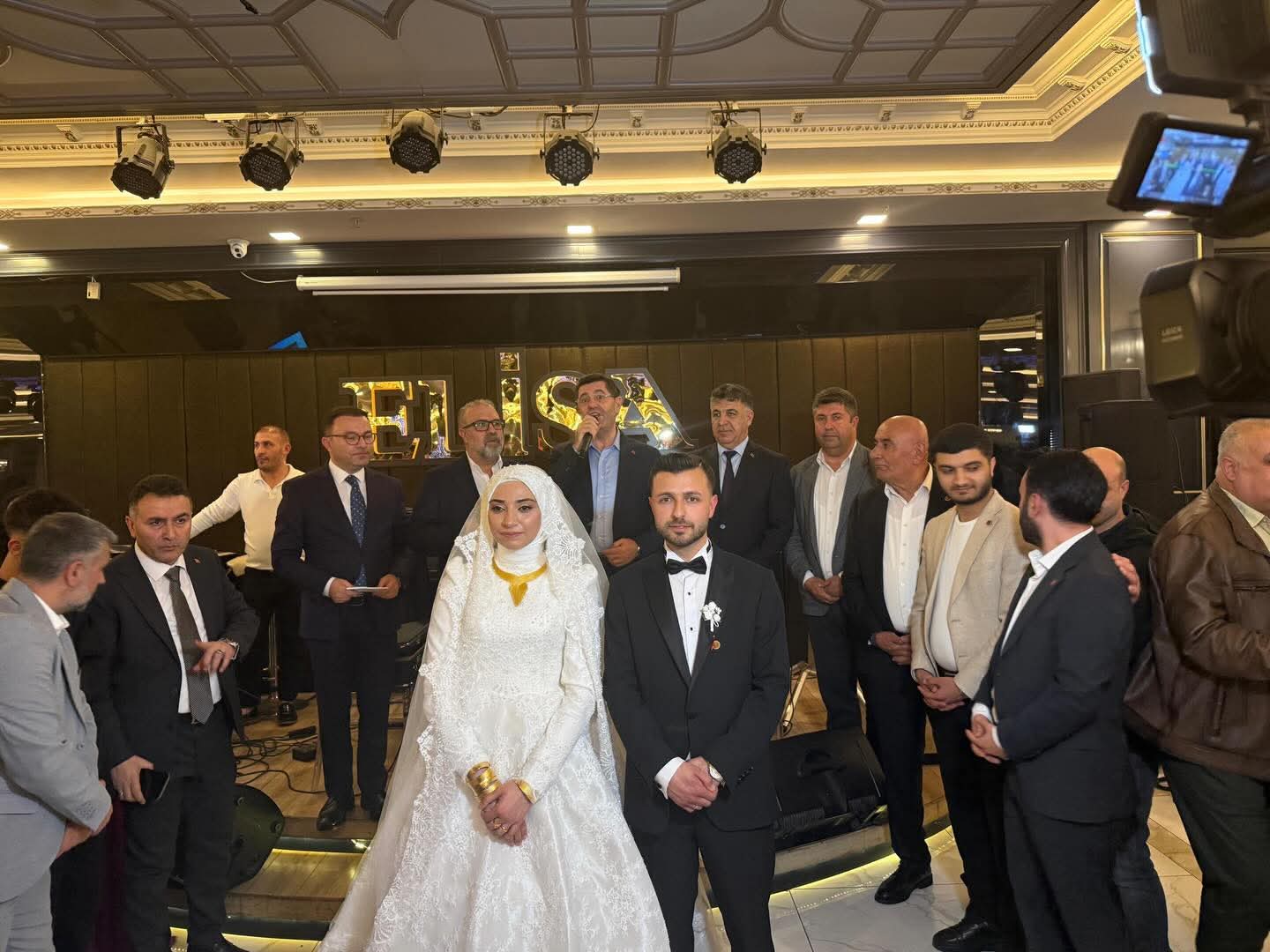 Nikâh ve takı merasiminin ardından sahneye çıkan Başkan Çerkez, gelin ve damadı tebrik ederek mutluluk dileklerini iletti.