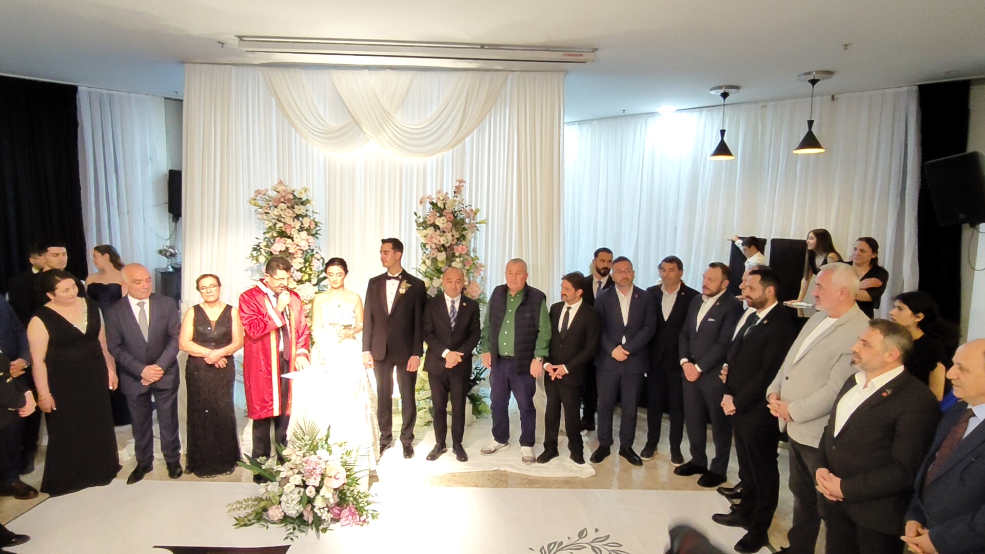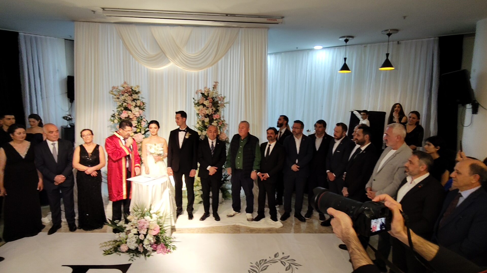 Genç çiftin nikahı Çekmeköy Belediye Başkanı Orhan Çerkez tarafından kıyıldı. Nikah şahitliklerini ise CHP Genel Başkan Yardımcısı Özgür Karabat ve siyasetçi Cemal Enginyurt üstlendi. Alkışlar eşliğinde “evet” diyen çift, davetlilerin iyi dilekleriyle yeni hayatlarına adım attı.