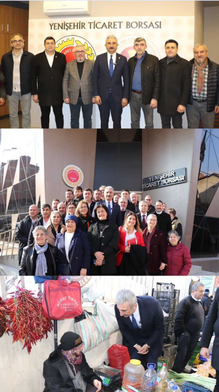 HABERMAX. BURSA / YENİŞEHİR – Cumhuriyet Halk Partisi (CHP) Bursa İl Başkanlığı, kent genelinde sürdürdüğü saha çalışmalarına Yenişehir’de devam etti. CHP Bursa İl Başkanı Nihat Yeşiltaş ve beraberindeki heyet, ilçe merkezi, kırsal mahalleler, pazar yeri, meslek örgütleri ve üreticilerle bir araya gelerek yurttaşların sorunlarını yerinde dinledi.