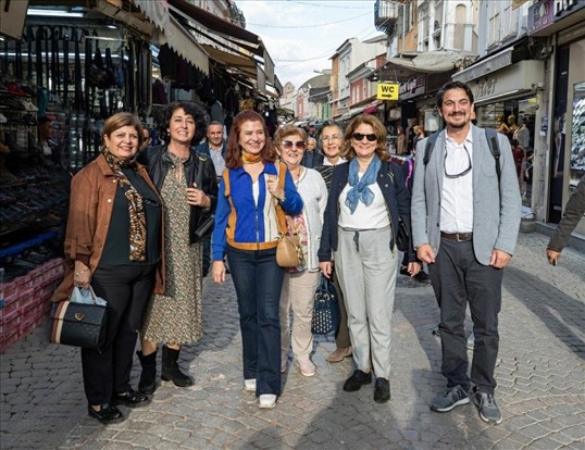 Toplantının ardından tarihi Kemeraltı turu yapan başkan eşleri, balık, sebze ve meyve tezgahlarıyla İzmir’in en önemli deneyim merkezlerinden biri olarak bilinen Havra Sokağı’na, ardından Başdurak Turistik El Sanatları Çarşısı’na, son olarak da tarihi Kızlarağası Hanı’na gitti.