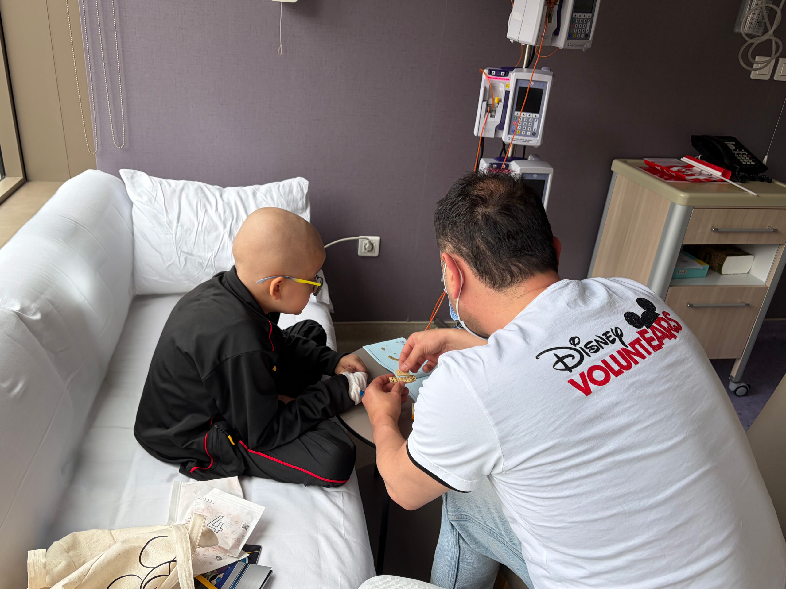 Ortak alandaki etkinliklerin yanı sıra, Disney VoluntEARS gönüllü ekibi odalarında tedavisi devam eden çocukları ziyaret etti. Gönüllüler, çocuklarla odalarında bire bir eğitici ve eğlenceli aktiviteler gerçekleştirerek çocukların bu özel günün coşkusunu doyasıya yaşamasına destek oldu.