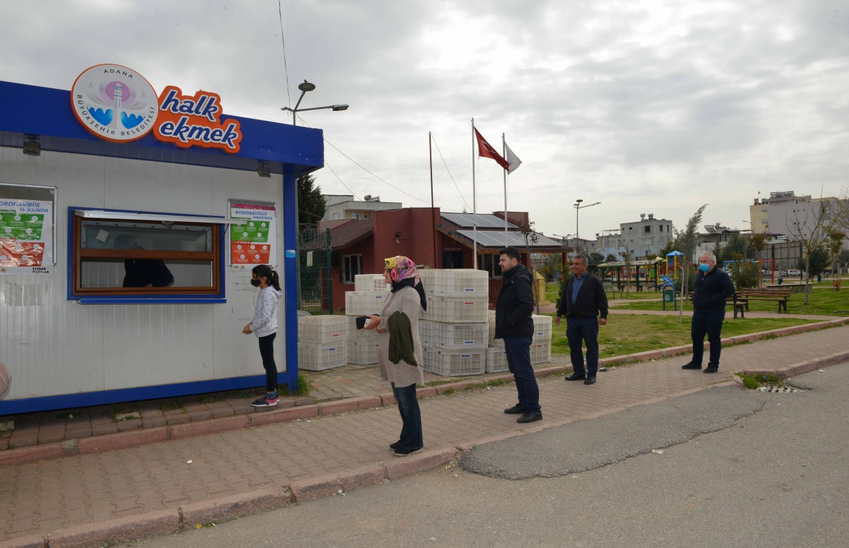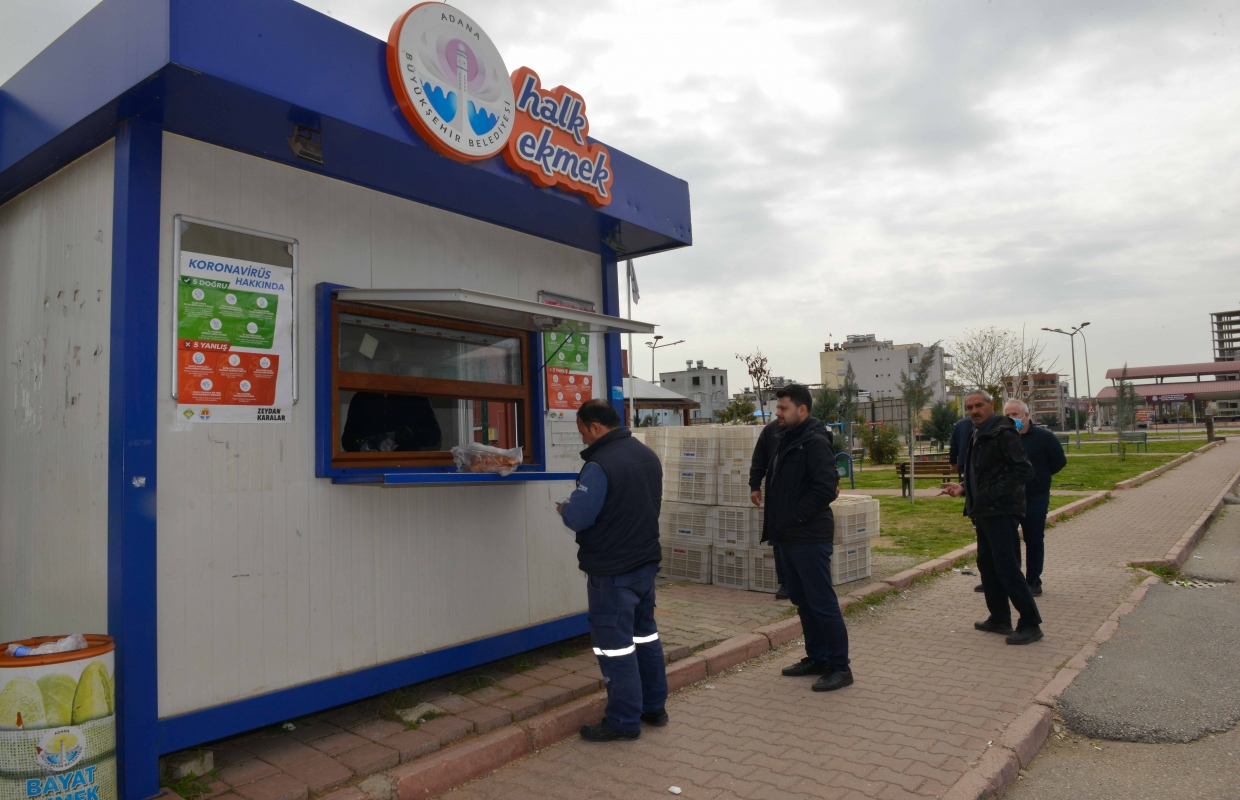 AHA.Adana Büyükşehir Belediyesine ait 237 ekmek büfesinde, halka ekmek satışı yapan personelin maske, bone, eldiven takıp, hijyen kurallarına dikkat ederek hizmet vermesi konusunda titiz davranılıyor.