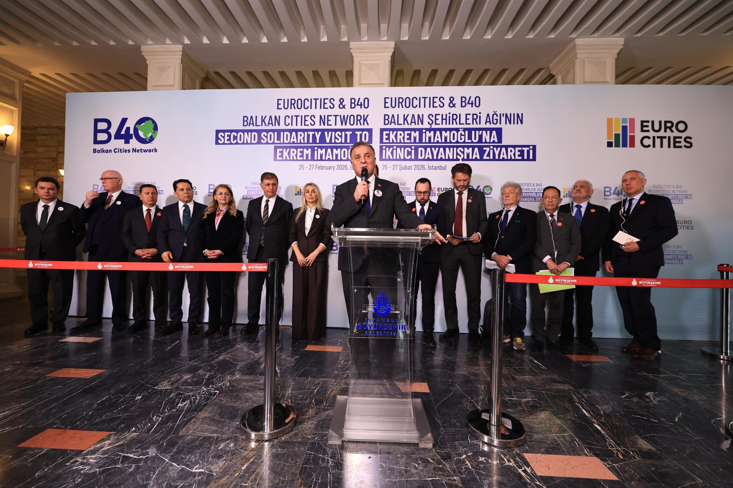 Dr. İmamoğlu, yaptığı konuşmada Avrupa ve Balkan şehirlerinden gelen desteğin yalnızca bir nezaket ziyareti değil, demokrasi ve halk iradesine sahip çıkmanın güçlü bir ifadesi olduğunu vurguladı.