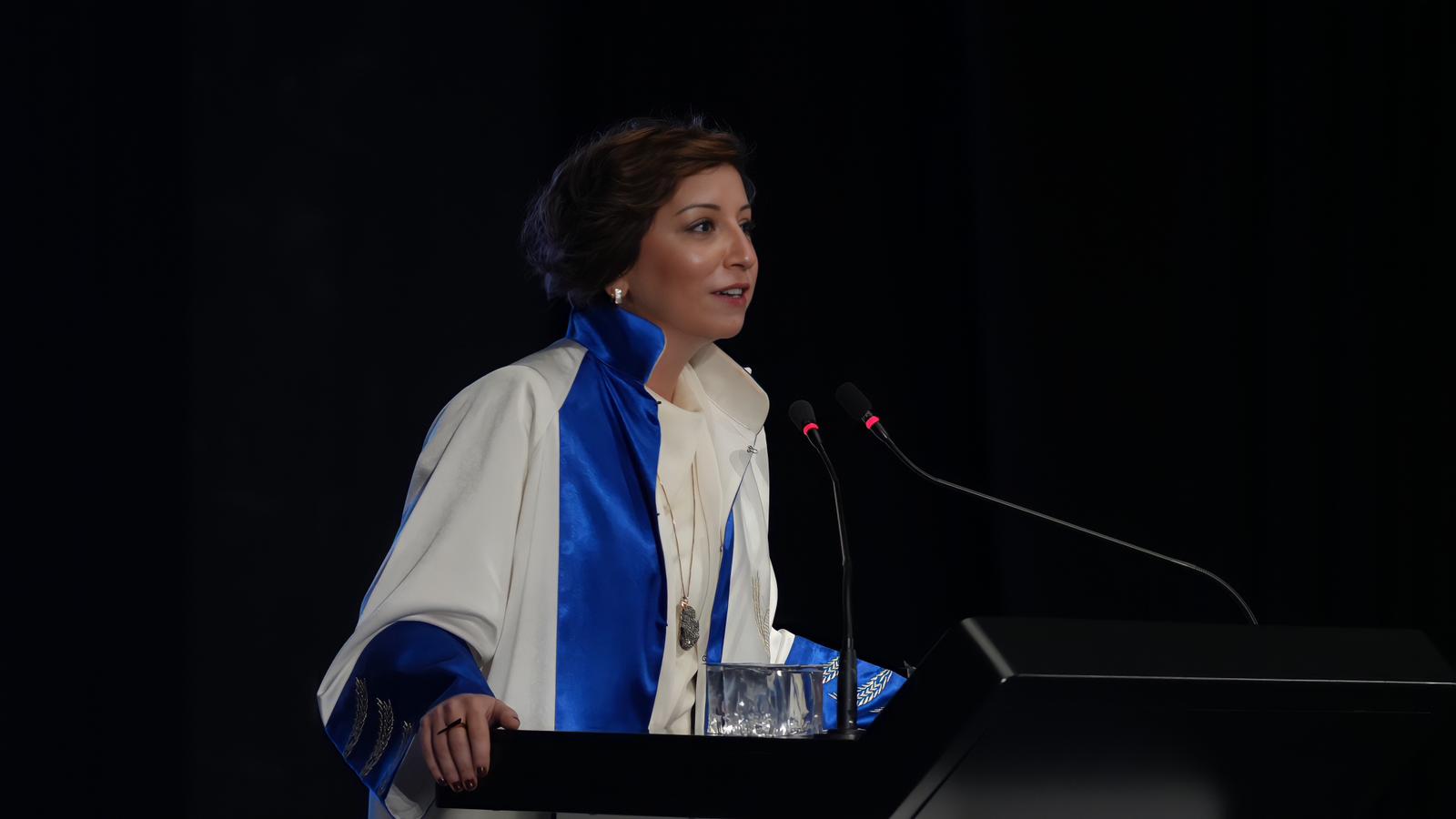 Rektör Prof. Dr. Güliz Muğan konuşmasında, “Üniversitemiz, bu yıl ulusal düzeyde YÖK’ün tam akreditasyonuna ve uluslararası düzeyde de farklı alanlarda dünya sıralamalarında üst derecelerde yer almanın gururunu taşıyor. Bu başarı, sizlere sunduğumuz eğitim kalitesinin ve küresel düzeyde rekabetçi bir mezuniyet imkânının göstergesidir. Sizler de bunun haklı gururuyla bu yola başlayın. Dünya artık sınırların kalktığı bir yer. İstanbul Okan Üniversitesi, sizleri bu vizyonla donatıyor. Uluslararasılaşma fırsatlarımız bu vizyonun en önemli parçalarından biri. Bunun farkındalığıyla Erasmus, ISEP gibi değişim programlarının ve farklı üniversitelerdeki çift diploma programlarının bir parçası olmaya çalışın; İngilizcenin yanı sıra Çince, Rusça, Almanca gibi sizi sadece yerel değil, küresel iş dünyasında da farklı kılacak ikinci bir dille tanışın” sözlerine yer verdi.