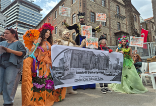 HABERMAX. İzmirli sanatçılar ve İzmir Kent Konseyi, İzmir Büyükşehir Belediyesi Meslek Fabrikası binasına yönelik tahliye çalışmalarına tepkilerini göstermek amacıyla basın açıklaması yaptı. Kent Konseyi Başkanı Özgür Topaç, yapının kentin ortak hafızası ile emeğin ve eşitliğin simgesi olduğunu vurgulayarak sürecin hukuk çerçevesinde yürütülmesi çağrısı yaparken, sanatçılar da Meslek Fabrikası’nın yeniden İzmir halkının hizmetine açılmasını istedi.