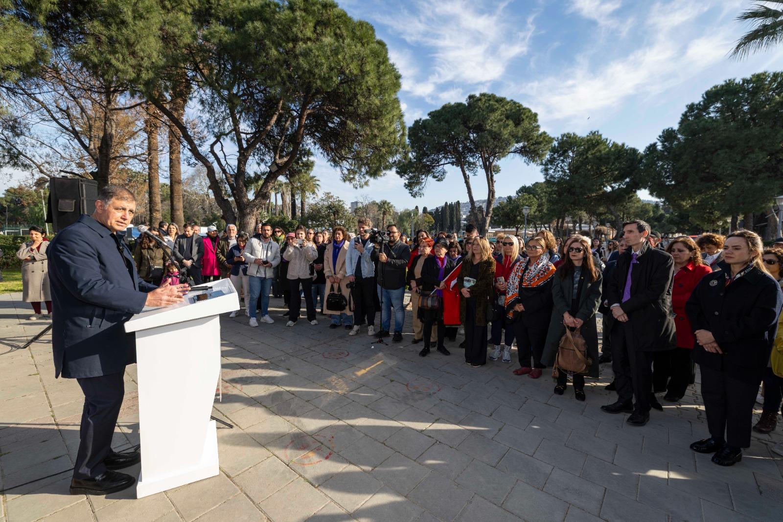 8 Mart Dünya Kadınlar Günü’nün tarihine değinen Başkan Tugay, dünyanın birçok yerinde kadınların hâlâ ayrımcılığa uğradığını, özgürlüklerinin ve emeklerinin kısıtlandığını söyledi. Kadınların şiddetten daha fazla etkilendiğini ve afet durumlarında da daha fazla mağduriyet yaşadığını belirten Tugay, şiddetin yalnızca bireysel değil, toplumsal ve küresel bir sorun olduğuna dikkat çekti. Yerel yönetimlerin kentteki şiddetin nedenlerini araştırarak önlem alması gerektiğini ifade eden Tugay, “Ancak toplumun tamamı bu konuda sorumluluk almalı; herkesin üzerine düşeni yapması gerekiyor” dedi.