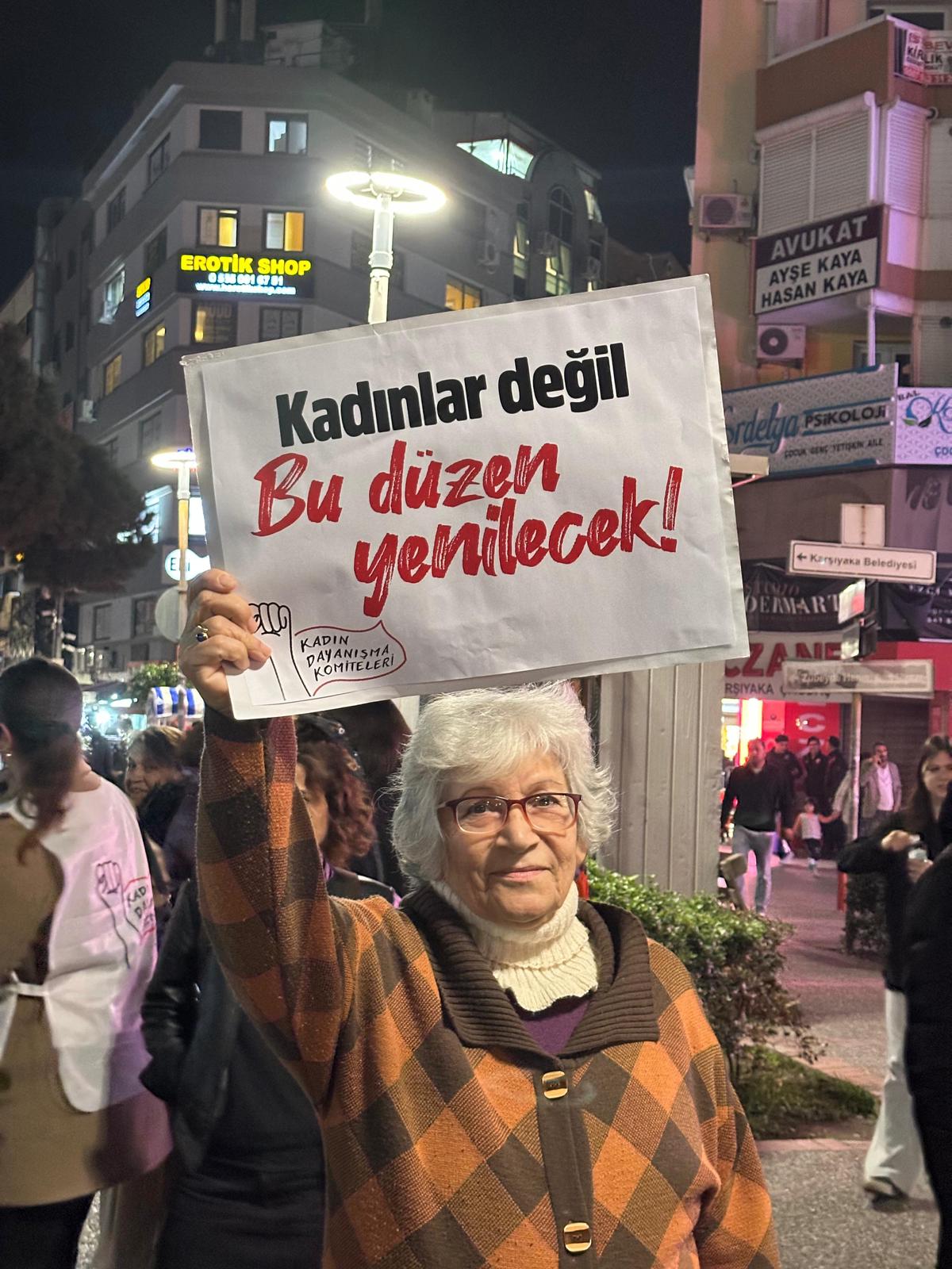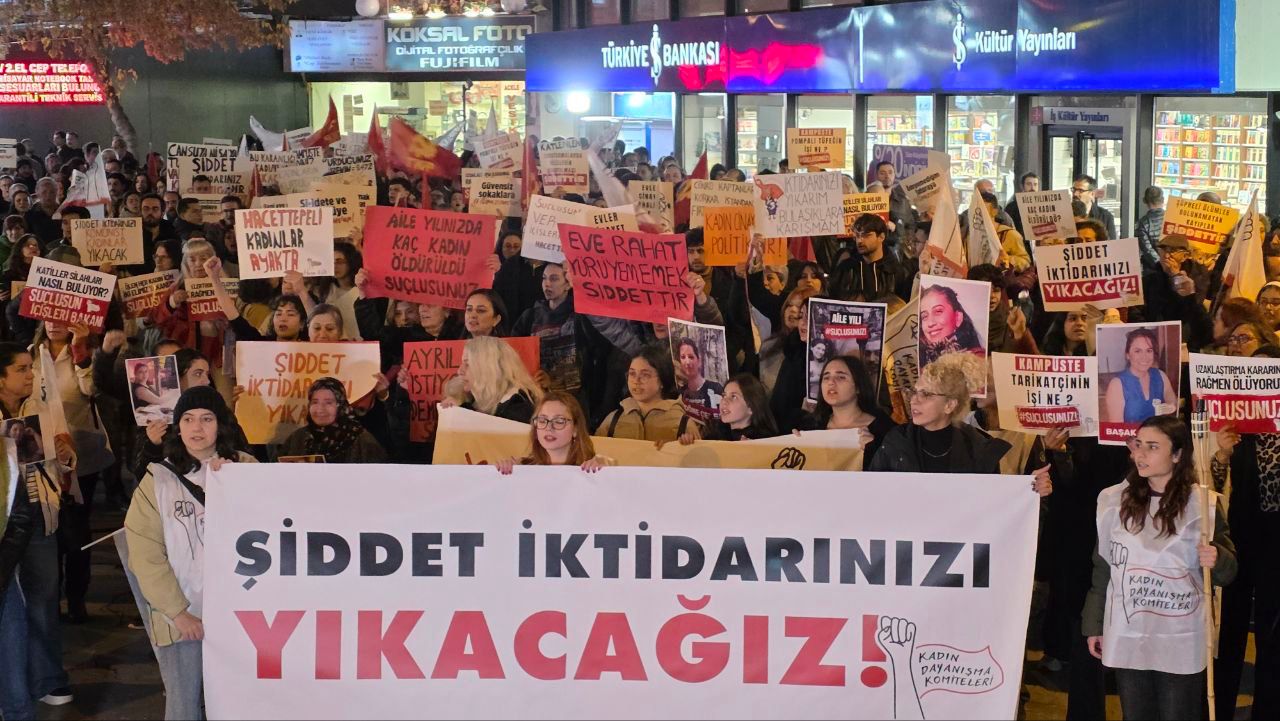 Eylemlerin bir diğer merkezi İzmir Karşıyaka oldu. “Şiddet iktidarınızı yıkacağız” pankartı ile yürüyen kadınlar, Karşıyaka Çarşı boyunca “Suçlulardan hesabı biz soracağız”, “Kadınlar yaşasın düzeniniz batsın” sloganlarıyla yürüdü.