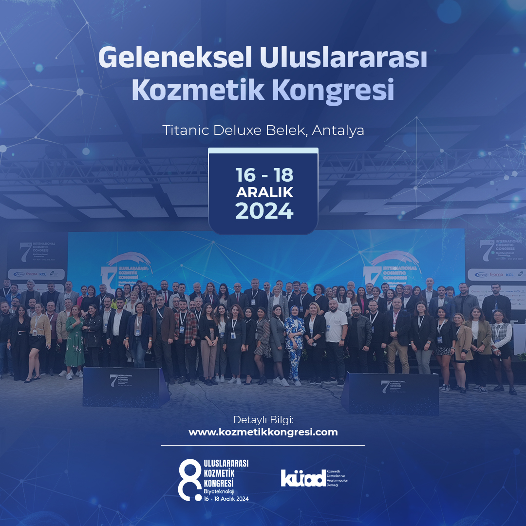 HABERMAX. Kozmetik sektörünün öncü oluşumu KÜAD (Kozmetik Üreticileri ve Araştırma Derneği) tarafından bu yıl 8.si düzenlenecek olan Uluslararası Kozmetik Kongresi 16-18 Aralık tarihlerinde Antalya Titanic Deluxe Golf Belek’te sektör temsilcileri ve profesyonellerini bir araya getirecek.   Ana teması “Biyoteknolojinin Kozmetik Sektöründeki Etkisi” olan kongre uluslararası arenadan önemli sektör profesyonellerini de Türkiye’de ağırlayacak.  Biyoteknoloji, kozmetik sektöründe son yıllarda çığır açan gelişmelere imkan tanıyarak, ürünlerin etkinliğini ve güvenliğini artırırken, çevreye duyarlı çözümler sunuyor. Kozmetik kongresi, Türkiye’nin kozmetik sektöründeki yenilikçi gelişmeleri ve biyoteknolojik uygulamaları tanıtması açısından kritik bir platform…