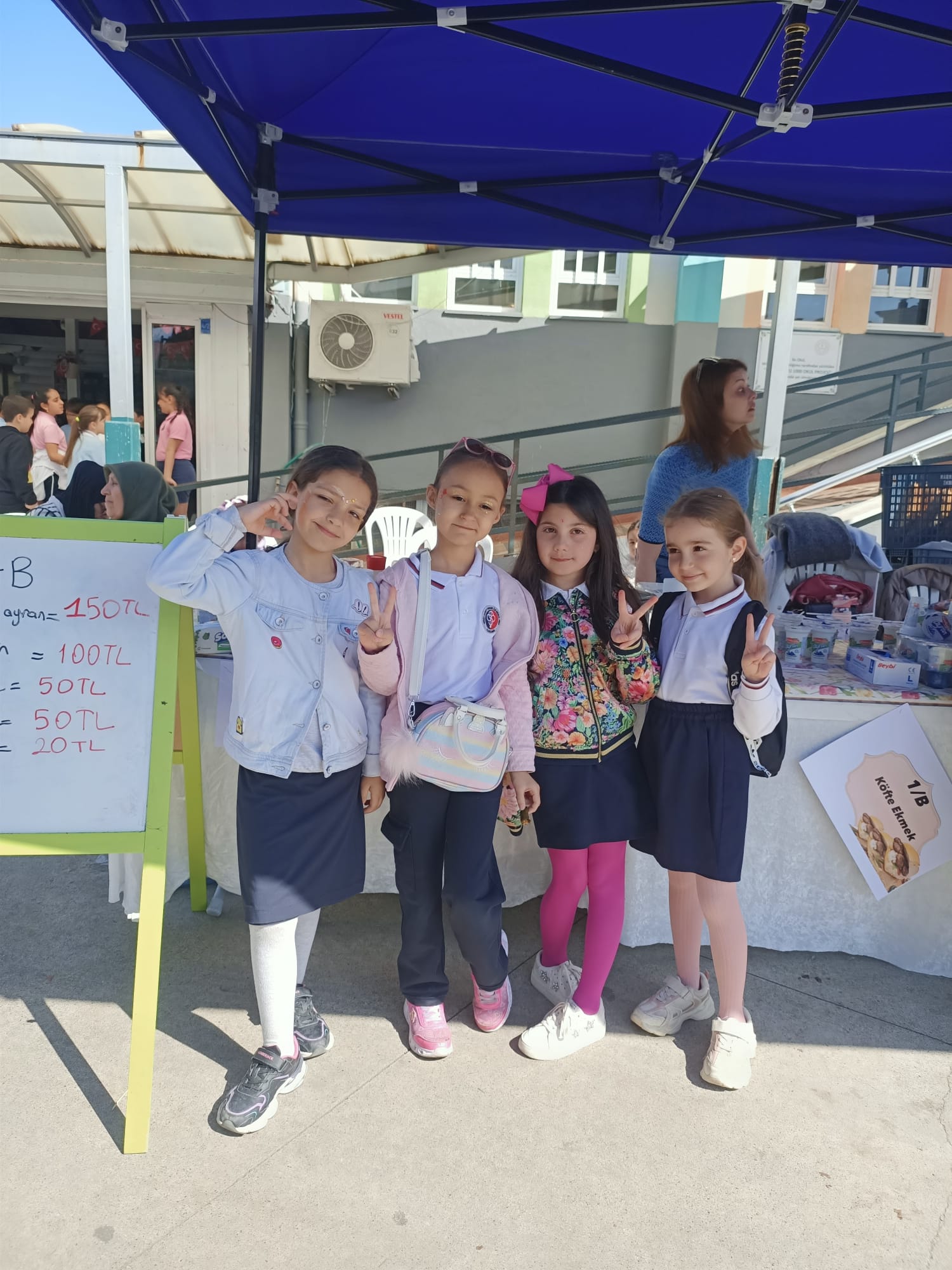 Henüz eğitim hayatlarının başında olan 1-B sınıfı minikleri, kermes boyunca tezgahların başında durarak hem paylaşmanın mutluluğunu yaşadı hem de okul arkadaşlarına ikramlarda bulundu. Velilerin evlerinde hazırladığı birbirinden lezzetli yiyecekler ve el emeği ürünler, kısa sürede tükenirken; miniklerin bu heyecanı ve gayreti görenleri duygulandırdı.