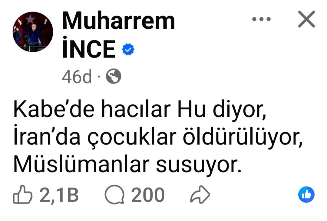 HABERMAX. ANKARA —Eski Memleket Partisi Genel Başkanı Muharrem İnce, sosyal medya hesabı üzerinden yaptığı paylaşımla İslam dünyasının sessizliğini hedef aldı. İnce’nin dini ve siyasi göndermeler içeren mesajı, kısa sürede sosyal medyanın en çok konuşulan konuları arasına girdi.