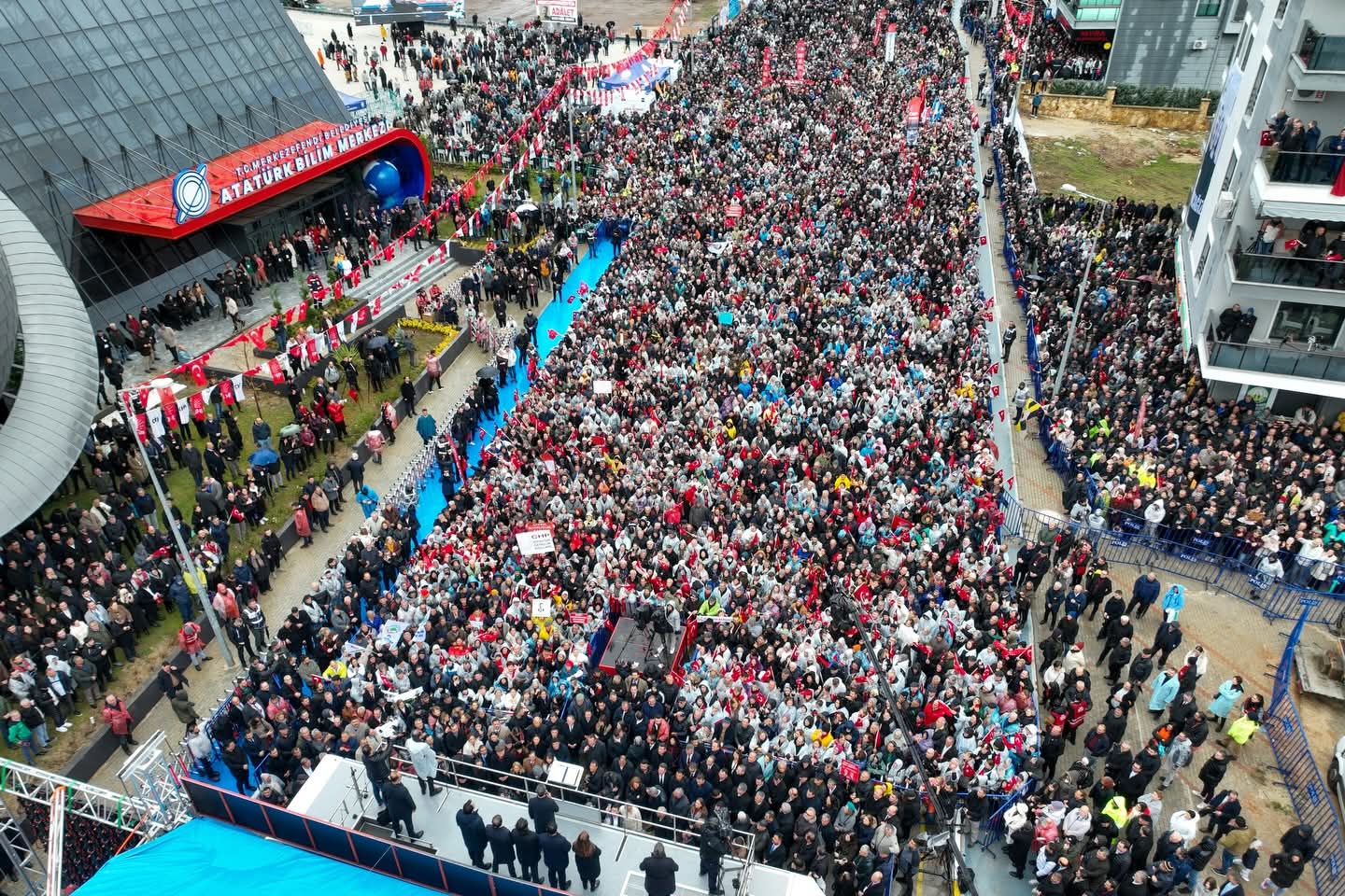 Miting, coşkulu sloganlar ve alkışlar eşliğinde sona erdi.
