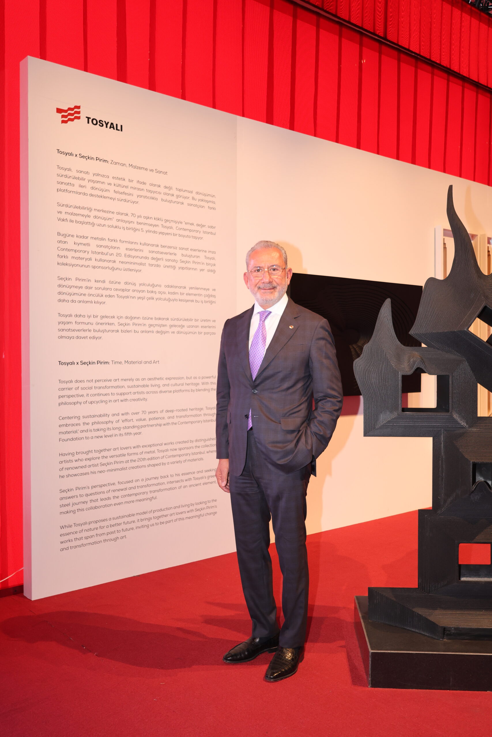 Contemporary Istanbul kapsamında açıklamalarda bulunan Tosyalı Holding Yönetim Kurulu Başkanı Fuat Tosyalı, “Contemporary Istanbul’un 20. yılında Seçkin Pirim’in eserlerini sanatseverlerle buluşturmak bizim için büyük bir mutluluk oldu. Tosyalı olarak sürdürülebilirlik vizyonumuz yalnızca üretim anlayışımızla sınırlı değil; kültür ve sanat aracılığıyla topluma yayılan bir dönüşüm hareketine de katkı sunuyor. Çünkü bizce sürdürülebilirliğin kalıcı olabilmesi, yaşamın her alanına nüfuz etmesiyle mümkün. Seçkin Pirim’in özüne dönüşü sorgulayan ve yenilenmeyi odağına alan sanat anlayışının, bizim yeşil çelik üretiminde doğaya ve geleceğe saygılı yaklaşımımızla örtüşmesi, bu iş birliğine ayrı bir anlam kattı. Contemporary Istanbul ile uzun süredir devam eden güzel bir iş birliğimiz var. Bir süre önce de Contemporary Istanbul Vakfı ve Hatay Mustafa Kemal Üniversitesi iş birliğiyle hayata geçirdiğimiz Kariyer ve Mesleki Gelişim Eğitim Programı ile deprem sonrası eğitimlerine ara vermek zorunda kalan genç sanatçılarımızı desteklemeye başladık. Contemporary Istanbul ile olan iş birliğimizi önümüzdeki yıllarda da daha güzel projelerle taçlandırarak sanata ve sanatçılara olan desteğimizi sürdüreceğiz.” dedi.