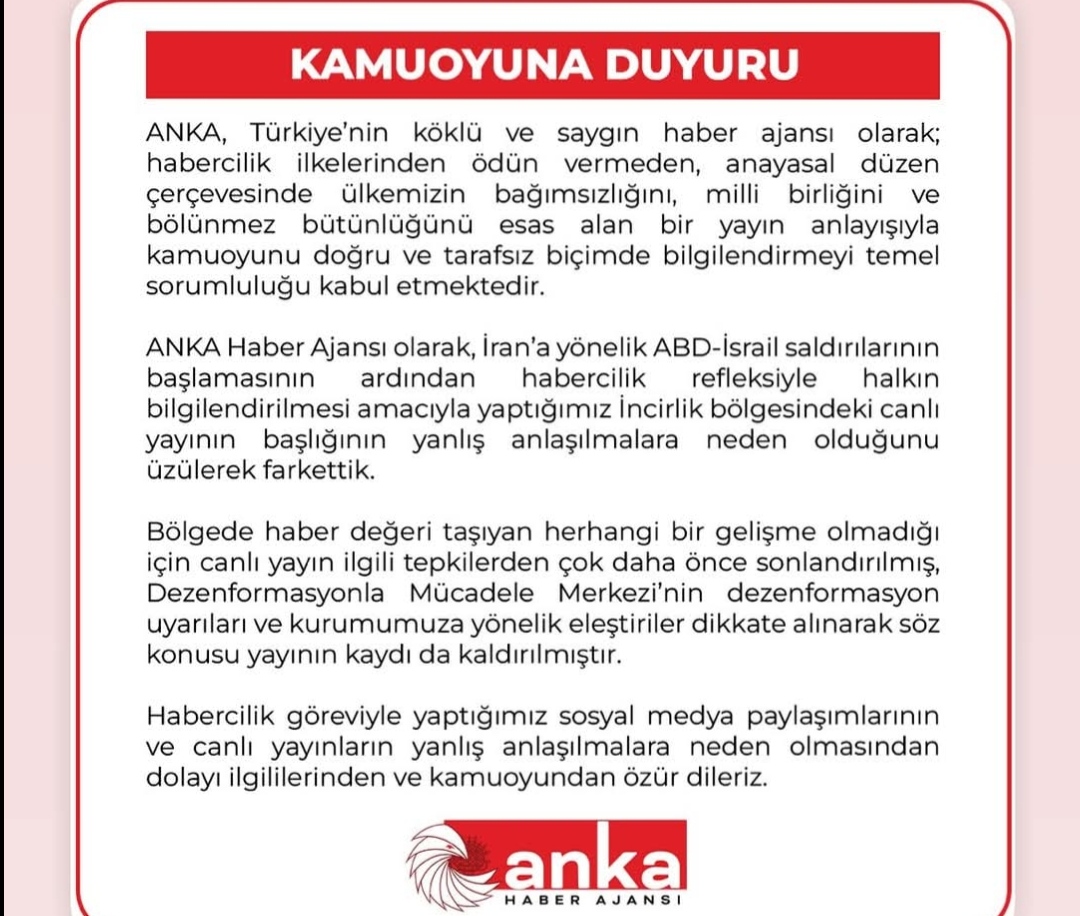 ANKA Haber Ajansı da yayınla ilgili gerekli tasarrufu yaparak canlı yayını sonlandırmış ve kamuoyuna açıklamada bulunmuştur. Söz konusu canlı yayın sırasında herhangi bir askeri sırrın ifşa edilmediği görülmektedir.