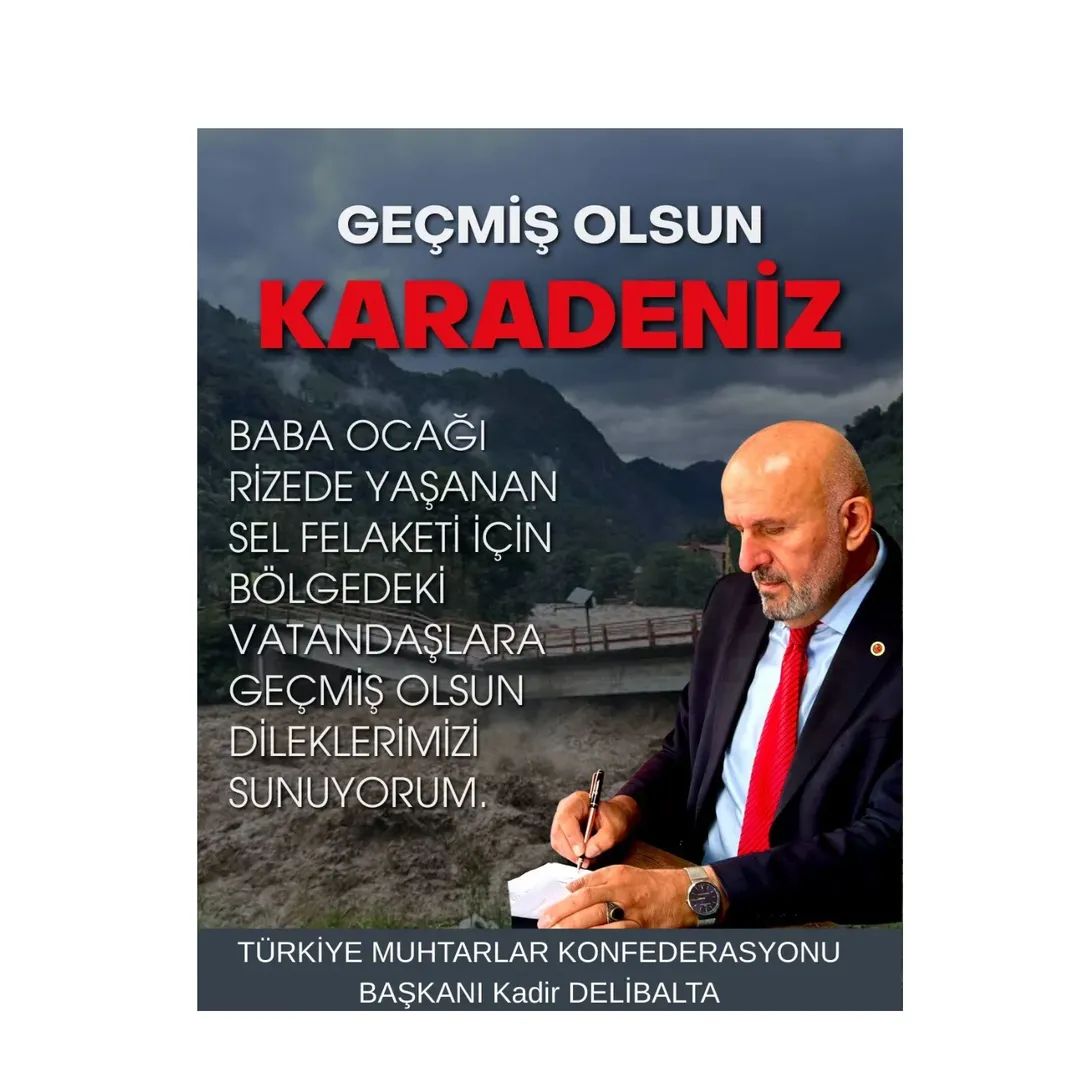 HABERMAX. Türkiye Muhtarlar Konfederasyonu Genel Başkanı Kadir Delibalta, Karadeniz Bölgesi’nde yaşanan sel felaketi sonrası yürekleri ısıtan bir dayanışma mesajı yayınladı. Rize, Artvin ve Trabzon’da etkili olan yoğun yağışların yol açtığı sel ve heyelan felaketi, bölge halkını derinden etkilerken, Delibalta’nın içten mesajı birlik ve beraberlik ruhunu bir kez daha ön plana çıkardı