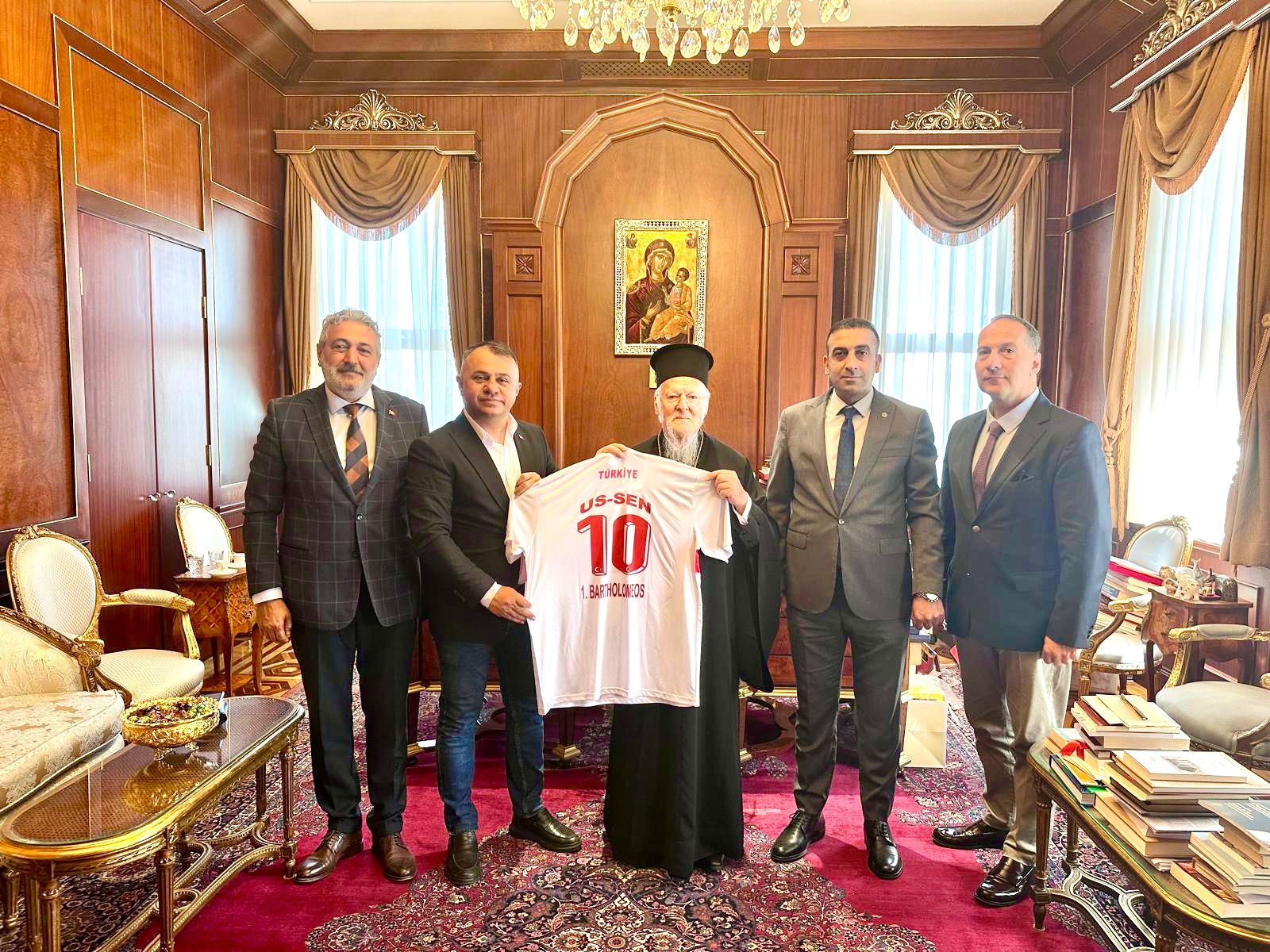 HA ERMAX. İstanbul – Uluslararası Sporcu Sendikası (US-SEN) Genel Başkanı Bekir Ayaz, Başkan Vekili Koral Erel ve Teşkilat Başkanı Barış Avşar’dan oluşan bir heyetle Fener Rum Patriği I. Bartholomeos’u 24 Mayıs 2025 tarihinde İstanbul’da ziyaret etti. Nezaket çerçevesinde gerçekleşen buluşmada, sporun evrensel birleştirici rolü, kültürlerarası diyalog imkanları ve barışa sunabileceği katkılar ele alındı.
